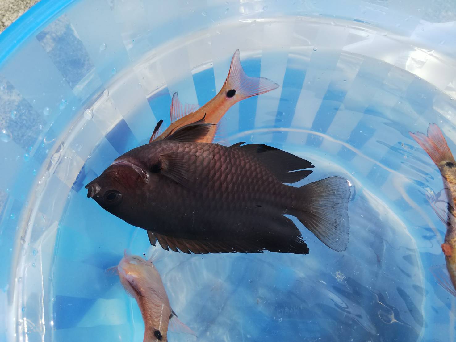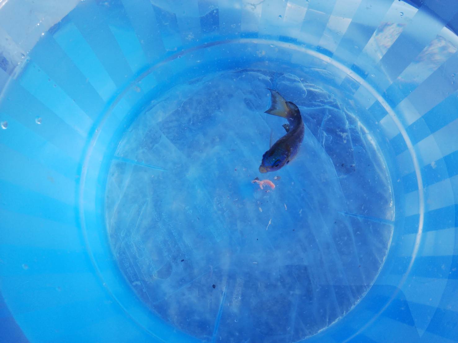 ちっちゃい綺麗な青い子も釣れたよ。この子はすぐにリリースしました。